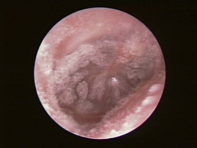・通常はブドウ球菌などの細菌感染によるものですが、すごくかゆくて、白っぽくてネバネバする耳ダレが大量に出る場合には、真菌(アスペルギルス、カンジダなどのカビ)が原因のこともあります。
